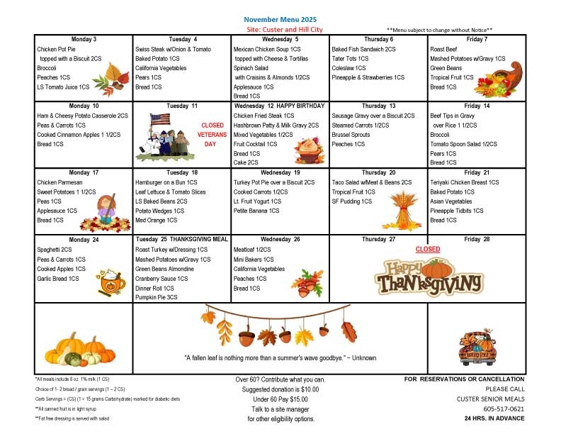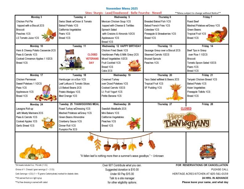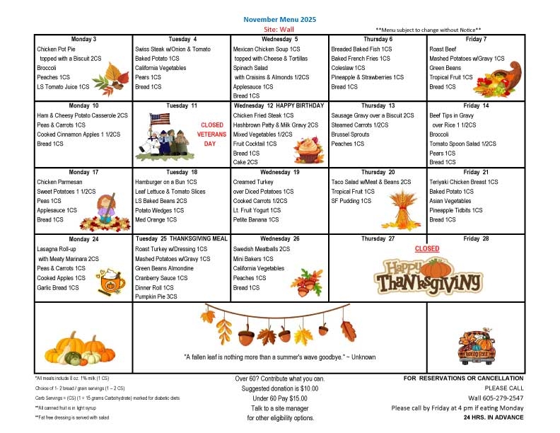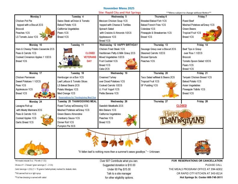 Meals on Wheels Western South Dakota provides nutritious meals Monday through Friday in 39 communities throughout western South Dakota. Participants may enjoy a meal with their friends and neighbors in one of our congregate dining rooms in those communities. For home-bound seniors, volunteers will deliver the meals to you.