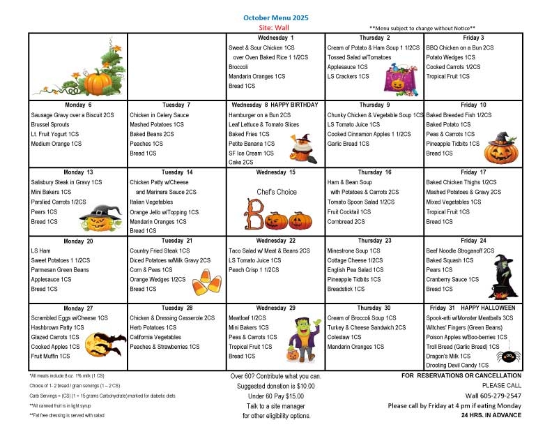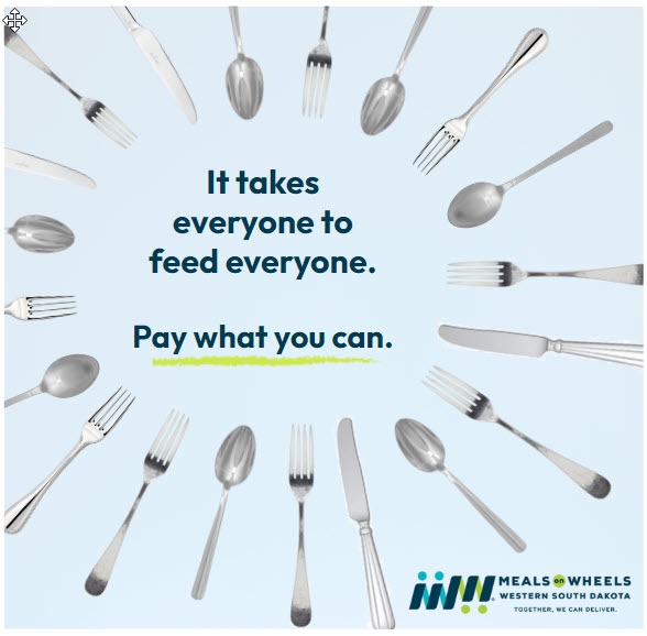 Meals on Wheels Western South Dakota provides nutritious meals Monday through Friday in 39 communities throughout western South Dakota. Participants may enjoy a meal with their friends and neighbors in one of our congregate dining rooms in those communities. For home-bound seniors, volunteers will deliver the meals to you.